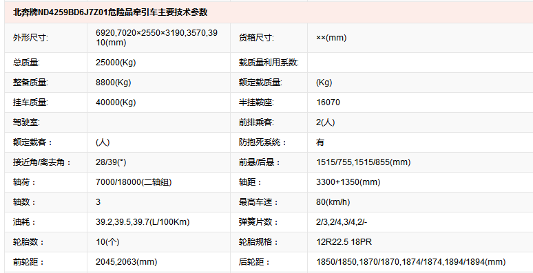 北奔牌ND4259BD6J7Z01危險(xiǎn)品牽引車beiben dangerous goods tractor