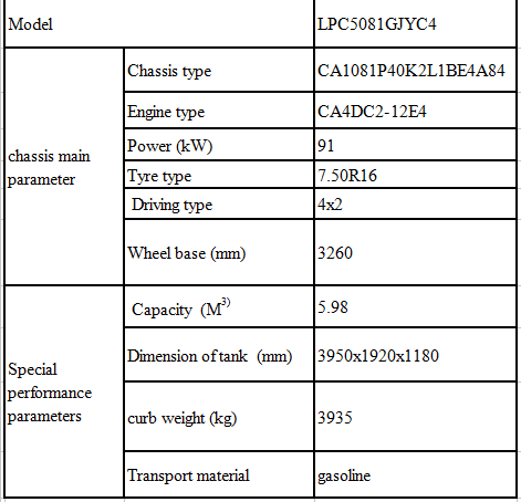 | 主要結(jié)構(gòu) | 罐體使用優(yōu)質(zhì)鋼板、采用梯形結(jié)構(gòu),旋壓弧形封頭。 罐體全部采用自動焊接成型。 罐底安裝有一個4寸海底閥,罐體尾部設(shè)有緊急切斷閥。 罐體上部設(shè)置一個人孔蓋。 罐頂設(shè)圍框,罐后帶扶梯。 罐體側(cè)邊設(shè)置軟管筒,用于存放卸料管。 按國家標(biāo)準(zhǔn)安裝側(cè)防護、尾防護、后防護及示廓、示廓、轉(zhuǎn)向等燈具。 | |