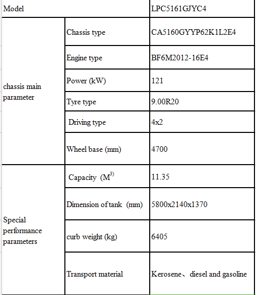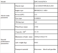 底盤(pán)主要性能參數(shù) | 底盤(pán)型號(hào) | CA5160GYYP62K1L2E4 | |