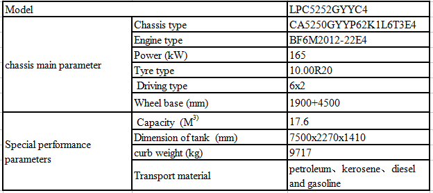 底盤主要性能參數(shù) | 底盤型號 | CA5250GYYP62K1L6T3E4 | |
