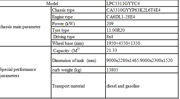 | 主要結(jié)構(gòu) | 罐體使用優(yōu)質(zhì)鋼板、采用橢圓/梯形結(jié)構(gòu),旋壓弧形封頭。 罐體全部采用自動(dòng)焊接成型。 罐底安裝有一個(gè)4寸海底閥,罐體尾部設(shè)有緊急切斷閥。 罐體上部設(shè)置二個(gè)人孔蓋。 罐頂設(shè)圍框,罐后帶扶梯。 罐體側(cè)邊設(shè)置軟管筒,用于存放卸料管。 按國家標(biāo)準(zhǔn)安裝側(cè)防護(hù)、尾防護(hù)、后防護(hù)及示廓、示廓、轉(zhuǎn)向等燈具。 | |