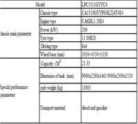 底盤主要性能參數(shù) | 底盤型號(hào) | CA5310GYYP63K2L6T4E4 | |